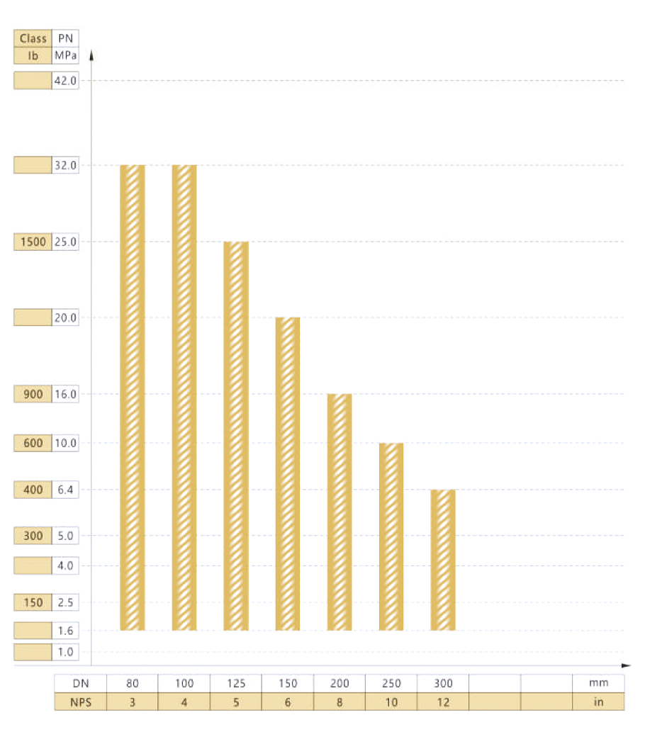 FSJ-B300型阀门公称通径与公称压力试验范围