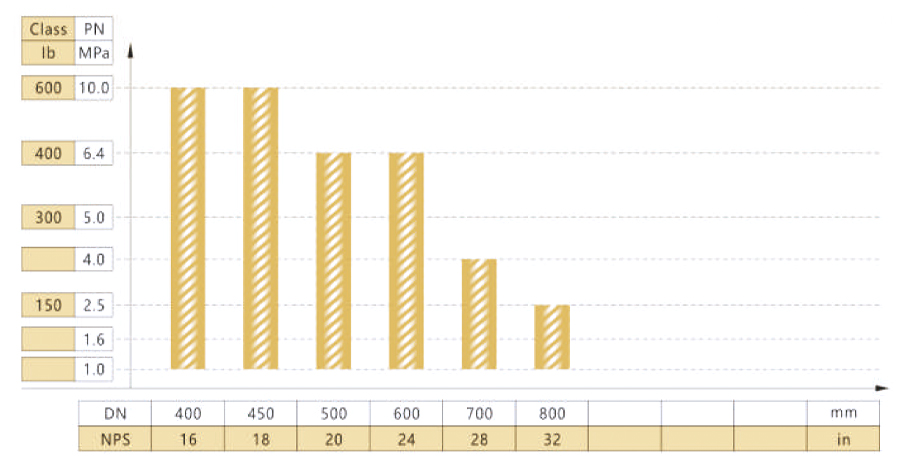 FSJ-B400型阀门公称通径与公称压力试验范围