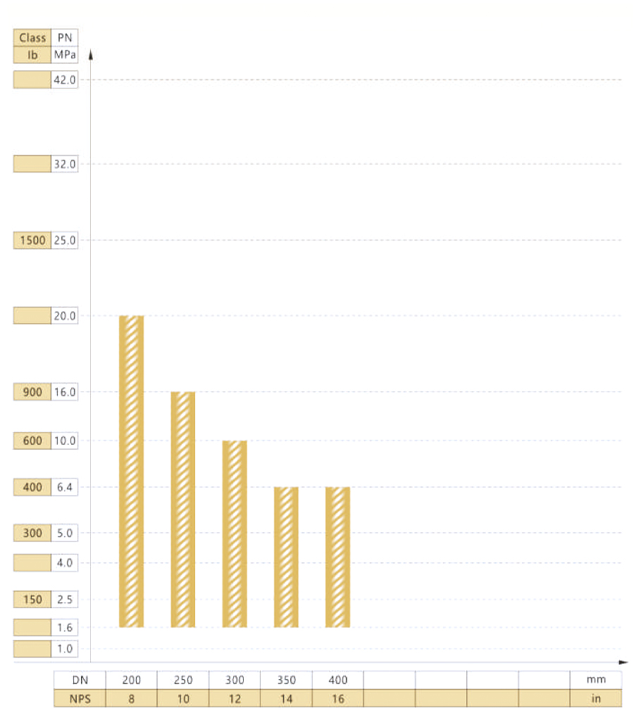 FSJ-B400型(特制型)阀门公称通径与公称压力试验范围
