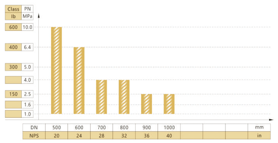 F5J-B1000型阀门公称通径与公称压力试验范围