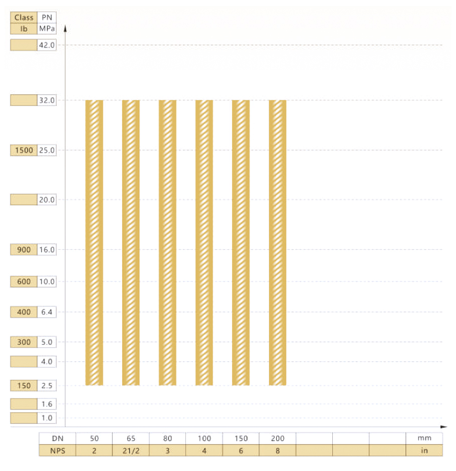 FSJ-H200型阀门公称通径与公称压力试验范围