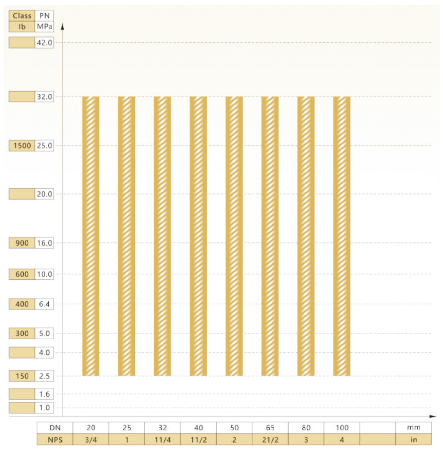 FSJ-H100型阀门公称通径与公称压力试验范围