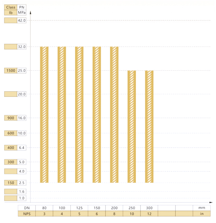 FSJ-H300型阀门公称通径与公称压力试验范围